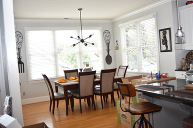 Like most homes I do , I typically talk my clients out of keeping a traditional dining room if they do not really need it, I mean what is the purpose? The client said well we like to sit and talk while we are cooking and gathered, I said well... there is not enough space in here for that and the kitchen is in the other room. I noticed that throughout the space there was no space for the Mr to do is work, I felt that they needed a small home office and maybe a little adult space since the couple have a large variety of liquors.